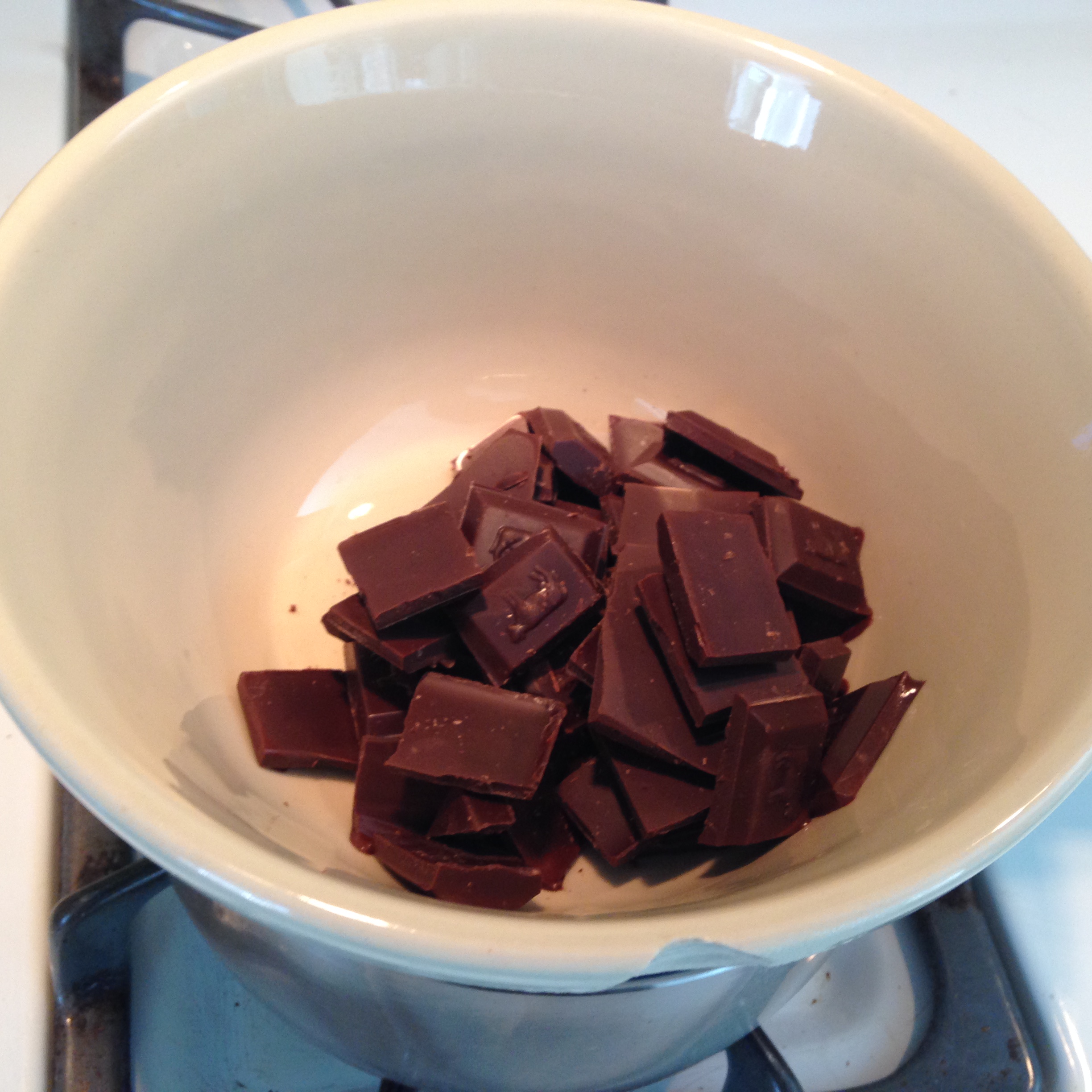 *NOTE: Instead of a double boiler, I use a saucepan with about 1 inch of water in it with a heat safe bowl on top. Make sure that the bowl does not touch the water, as you want the chocolate to steam not boil.