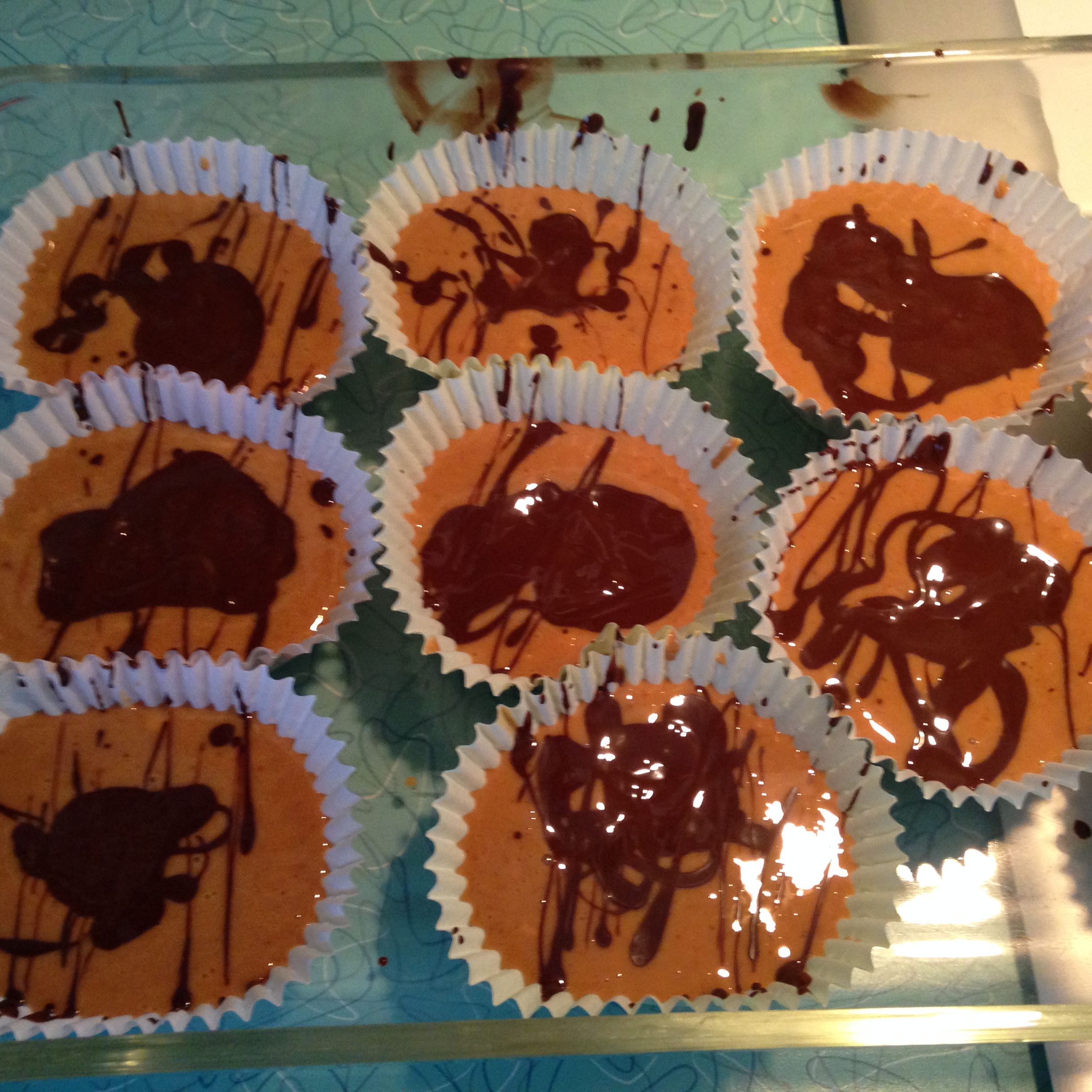 - Then SPOON more chocolate/coconut oil mixture into each cup. If you want them to be like Reeses then put in enough chocolate/coconut oil mixture to cover all the peanut butter. I just drizzle chocolate on top for a pretty effect.